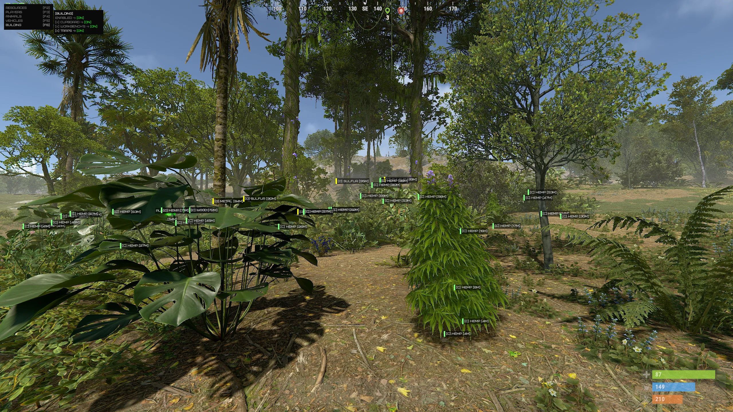 Building ESP highlights important base elements such as cupboards, workbenches, traps and key structures. This is especially useful during raids and reconnaissance, where every detail matters. The information is presented clearly without cluttering the interface, maintaining readability.
